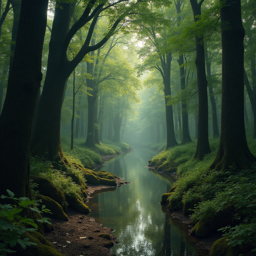 떡갈나무 숲 속에 졸졸졸 흐르는