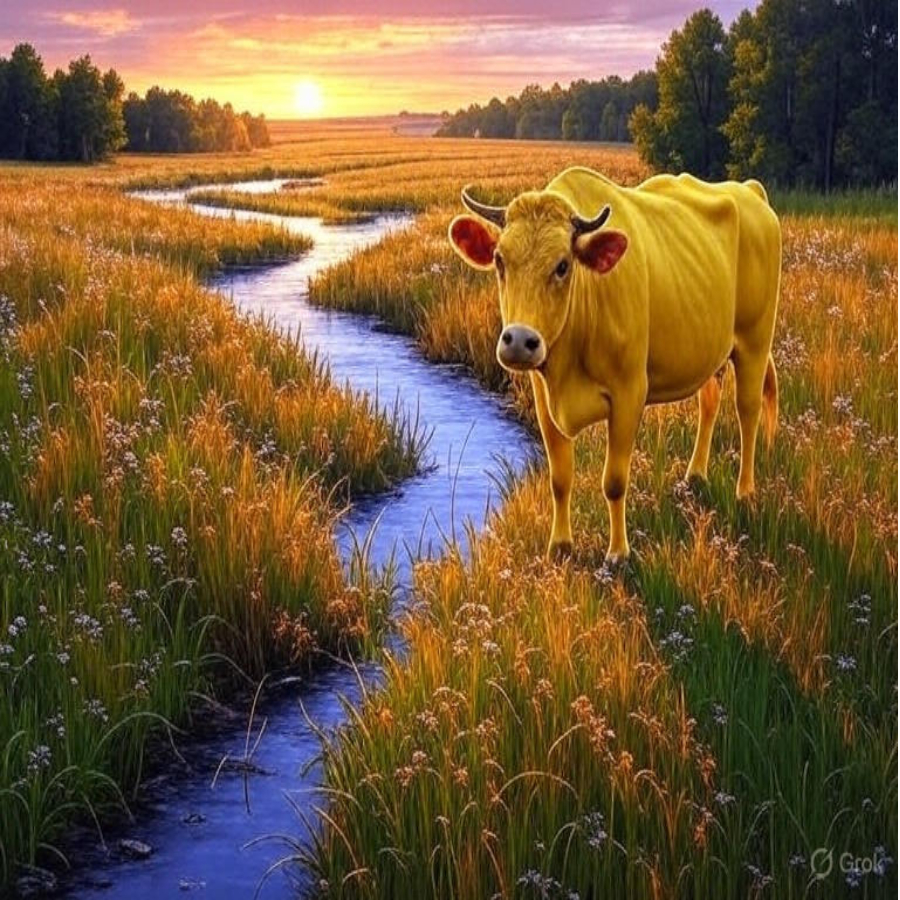 옛이야기가 들려오는 듯한 실개천, 한가롭게 꼬리를 흔드는 얼룩백이 황소, 금빛 게으른 울음을 우는 소까지. 이건 그냥 시가 아니라 한 폭의 잘 그린 풍경화, 아니, 생생한 영상에 가깝습니다.